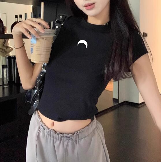 レディース トップス カットソー Tシャツ クロップド丈 半袖 ラウンドネック 襟なし タイト スリム 細身 ストリート かわいい シンプル カジュアル おしゃれ ラフ 存在感 ベーシック アクティブ 月 ムーン 春 夏 秋 ロングシーズン デート お出かけ 旅行 公園 女子会 休日 ショッピング コンサート ライブ お花見 カフェ フェス ランチ 韓国 オルチャン 楽ちん プレゼント プチプラ 普段使い 着回し モテ トレンド 流行 インスタ映え 定番 S M L XL 小さいサイズ 大きいサイズ