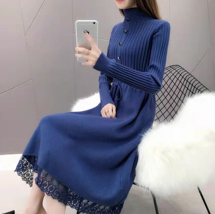 ニットドレス ドレス ワンピース 演奏会 発表会 ステージ 舞台 ダンス 衣装 謝恩会 演劇 ひざ丈 長袖 タートルネック レース リボン ウエストリボン ニット 可愛い きれいめ 大人可愛い 上品 おしゃれ キュート ガーリー エレガント 主役級 存在感 抜け感 クラシック 清楚 華やか ナチュラル クラシカル 無地 イベント ホテル レストラン 体型カバー 二の腕カバー 高見え 格上げ プチプラ 女子会 春 秋 冬 2XL 3XL 大きい M L XL カラバリ ブラック レッド オフホワイト ブルー
