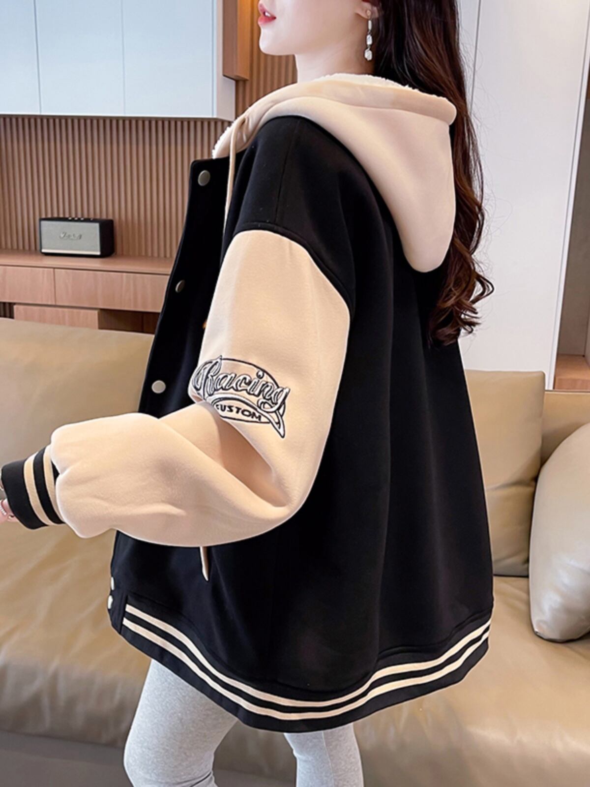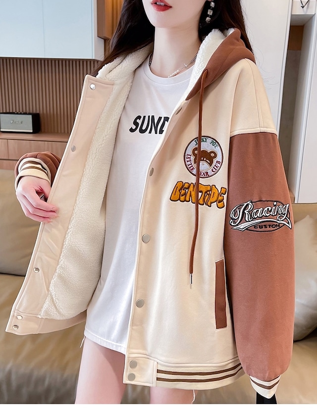ツートーン配色とラインデザインで、コーディネートに華を添えます! ゆったりとしたオーバーサイズとフード付きのデザインが、メンズライクな質感を可愛らしく引き立てる一着です。