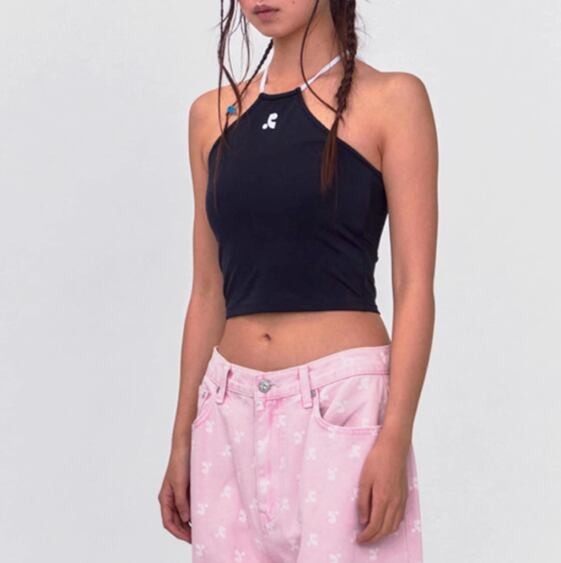 洗練されたデザインのノースリーブクロップド丈タンクトップは、シンプルながらもおしゃれでかっこいい印象を与えます。