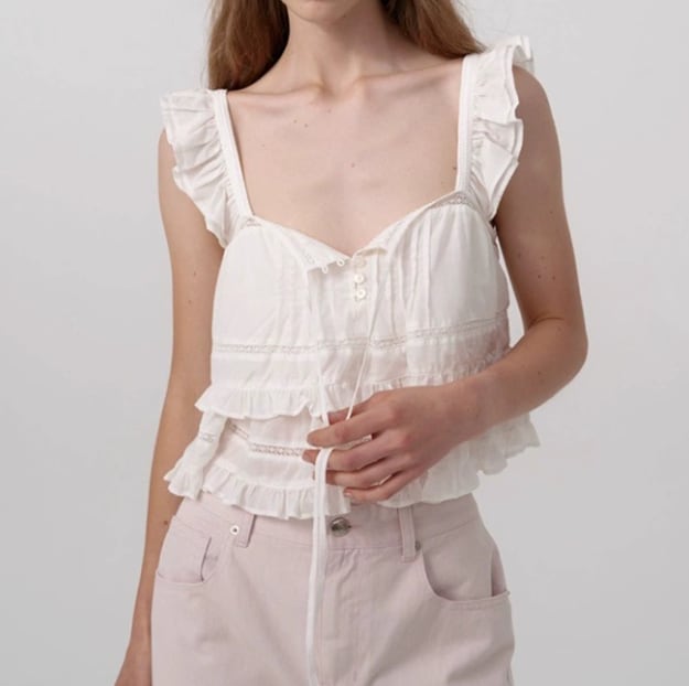 レディース トップス クロップド丈 袖なし ノースリーブ キャミソール フリル 透け感 かわいい おしゃれ ガーリー 存在感 ラブリー キュート ロリータ プリンセス ロマンティック ナチュラル 無地 春 夏 秋 ロングシーズン デート お出かけ 海 ビーチ 女子会 休日 バカンス ショッピング コンサート ライブ お花見 カフェ 重ね着 韓国 オルチャン 楽ちん プレゼント プチプラ 普段使い 着回し モテ トレンド 流行 インスタ映え S M 白 ホワイト ベーシックカラー 春カラー