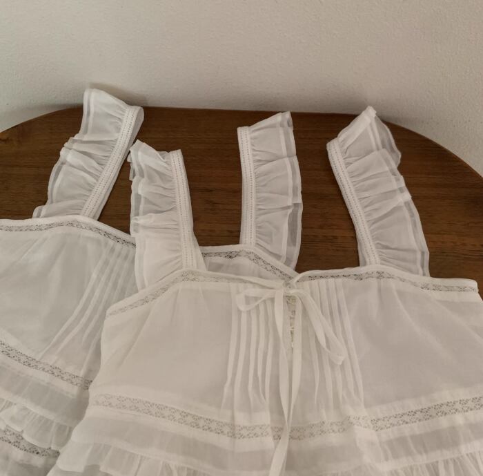 フリルと透け感が魅力的なデザインは、ガーリーでロマンティックな印象を与え、どんなシーンでも存在感を放ちます。