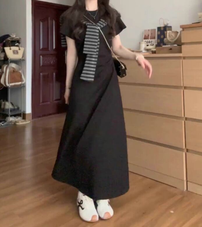ロングワンピース レディース ワンピース ロング ショール 半袖 ラウンドネック 襟なし かわいい シンプル カジュアル おしゃれ レトロ ラフ ガーリー ルーズ 存在感 キュート ベーシック アクティブ ナチュラル 無地 ボーダー 春 夏 秋 ロングシーズン デート お出かけ 公園 女子会 休日 ショッピング コンサート ライブ カフェ ランチ 楽ちん 体型カバー プチプラ 普段使い 着回し モテ インスタ映え 定番 S M L XL 小さいサイズ 大きいサイズ 黒 ブラック グレー ベーシックカラー