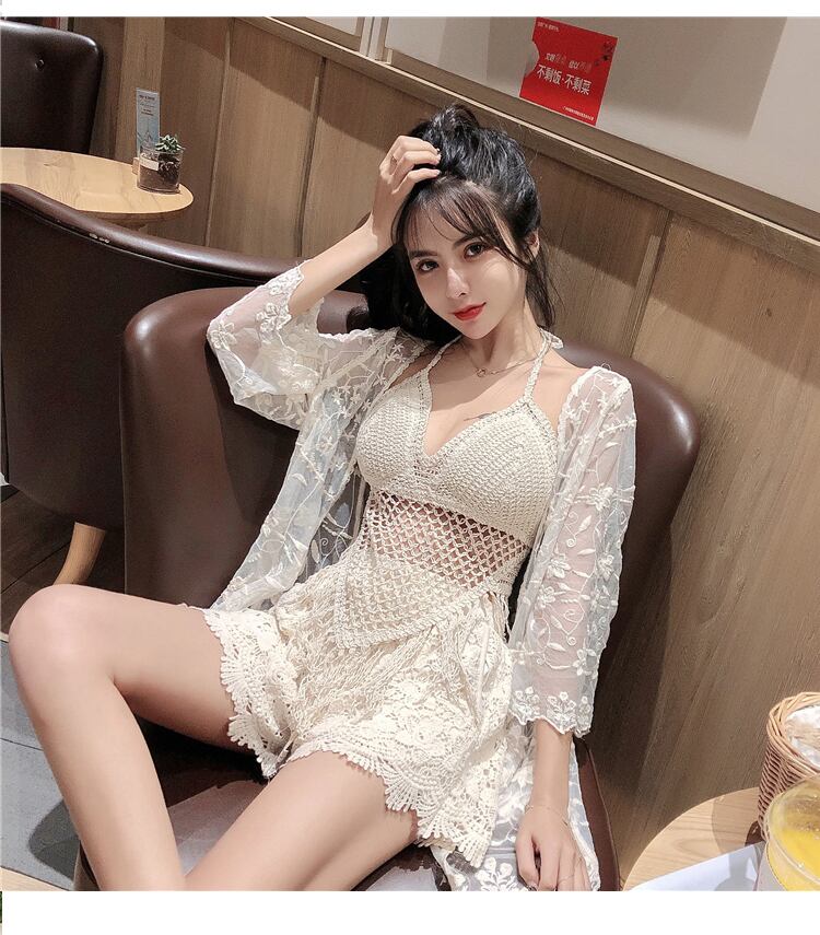 シンプルでありながら、エキゾチックな魅力を放つスイムウェアです。ホルターネックデザインが、背中や肩のラインを美しく引き立て、華やかなリゾート気分を演出します。クロシェ素材が特徴のショートパンツが、エレガントさと快適さを両立し、大人っぽいお洒落な印象を与えます。カーディガンは付属しません。