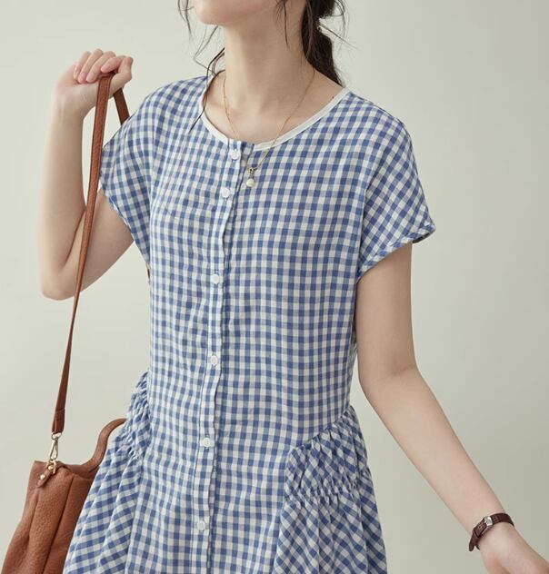 ロングワンピース レディース ワンピース ロング 半袖 ラウンドネック 襟なし Aライン リボン ウエストリボン かわいい シンプル カジュアル おしゃれ ラフ ガーリー ルーズ 存在感 ラブリー キュート カントリー ナチュラル チェック 格子柄 春 夏 秋 ロングシーズン ママ デート お出かけ 旅行 女子会 休日 ショッピング コンサート ライブ お花見 カフェ プレゼント プチプラ 普段使い 着回し モテ 清楚 インスタ映え 定番 S M L 小さいサイズ 大きいサイズ ブルー 春カラー