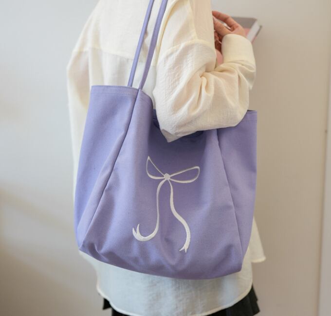 トートバッグ バッグ カバン レディース トート 肩がけ 大容量 多収納 便利 スクエア 四角 リボンプリント キャンバス ベーシック かわいい シンプル お洒落 ラフ ラブリー キュート ガーリー 存在感 華やか ロゴ 通学 デート お出かけ 旅行 お買い物 女子会 休日 ランチ 公園 ピクニック ショッピング 学校 マザーズバッグ ママ 普段使い モテ インスタ映え 定番 春 夏 秋 冬 シーズンレス ロングシーズン 大きめ 大きい カラバリ カーキ ピンク ブラック ブルー パープル グレー