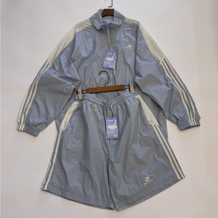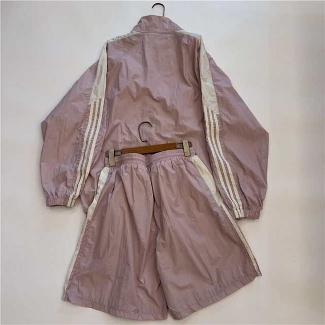 スポーティーなナイロンウィンドブレーカーと、ハーフパンツの組み合わせで、カジュアルからおしゃれまで幅広いシーンに活躍します。それぞれを単品でも着回せるので、コーディネートの幅が広がります。