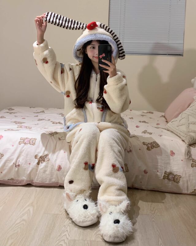 ツーピース 上下セット レディース トップス パンツ ルームウェア パジャマ 部屋着 寝巻き ロングパンツ 長袖 フード もこもこ ふわふわ ふっくら ファスナー 前開き ベルベット かわいい おしゃれ ラフ ガーリー ルーズ 存在感 ラブリー キュート 春 秋 冬 ロングシーズン お泊まり 旅行 休日 ホテル お家時間 韓国 オルチャン コーデ 楽ちん 暖かい プレゼント プチプラ モテ インスタ映え S M L XL 2XL 3XL 小さいサイズ 大きいサイズ オフホワイト ベーシックカラー