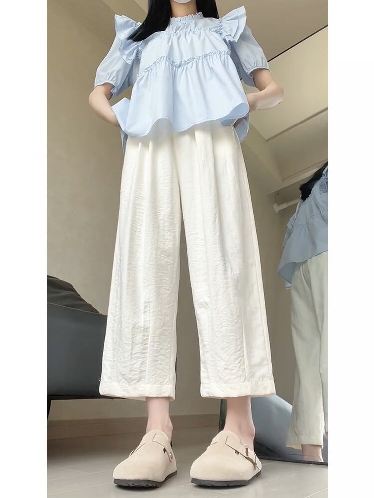 シワ感のあるさらっとした生地が心地よい膝下ロングワイドパンツ!夏から秋までロングシーズンで活躍し、足元をすっきりと見せるアンクル丈のデザインは、シンプルでありながら存在感を放ちます。おしゃれでありながらカジュアル感もあり、様々なシーンでお使いいただけます。女子会やデート、お出かけの際にはもちろん、学校や通学にもぴったりです!