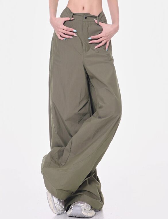 ハイウエストデザインとワイドシルエットが特徴で、カジュアルながらもこなれた印象を与えます。