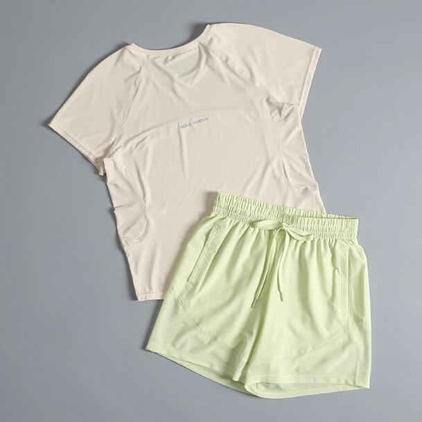 トップスはクルーネックの半袖Tシャツ、ボトムスはウエストゴムのショートパンツを採用。