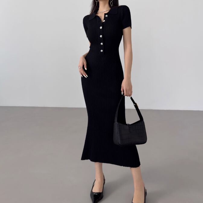 ニットワンピース ニットワンピ レディース ワンピース ニット ロング 半袖 襟付き タイト スリム 細身 マーメイド かわいい 大人可愛い きれいめ 上品 おしゃれ ガーリー エレガント 存在感 ラブリー キュート ロマンティック 無地 春 秋 デート お出かけ パーティー イベント レストラン 女子会 ホテル 発表会 カフェ ランチ プチプラ 普段使い 着回し モテ 清楚 インスタ映え S M カラバリ ローズレッド ブラック グレー カーキ アプリコット ベーシックカラー 大人カラー