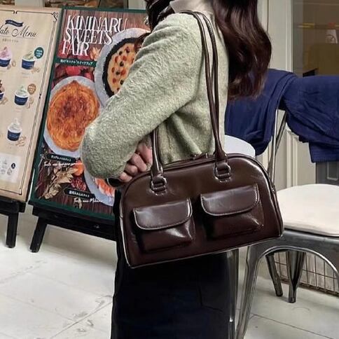 バッグ カバン レディース ショルダー 肩がけ ボストンバッグ 大容量 便利 自立 スクエア 四角 ポケット ファスナー レザー かわいい 大人可愛い カジュアル お洒落 ラブリー キュート ガーリー 存在感 クラシック 無地 デート お出かけ 旅行 お買い物 女子会 ショッピング ランチ ピクニック コンサート ライブ 普段使い 韓国 コーデ スタイル 高見え 格上げ モテ インスタ映え トレンド 流行 春 夏 秋 冬 シーズンレス ベーシックカラー 大人カラー 秋カラー 茶色 ブラウン