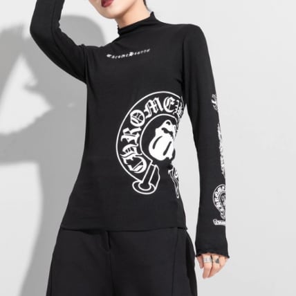 レディース トップス ロンT カットソー 長袖 ハイネック タイト スリム 細身 ストリート かわいい カジュアル おしゃれ かっこいい メンズライク マニッシュ ボーイッシュ 個性的 クール モード系 存在感 アクティブ ワイルド 男装 ロゴ 春 秋 お出かけ 旅行 公園 女子会 休日 ショッピング コンサート ライブ お花見 カフェ モノトーン 韓国 オルチャン プチプラ 普段使い 着回し インスタ映え M L XL 2XL 大きいサイズ 黒 ブラック ベーシックカラー 大人カラー