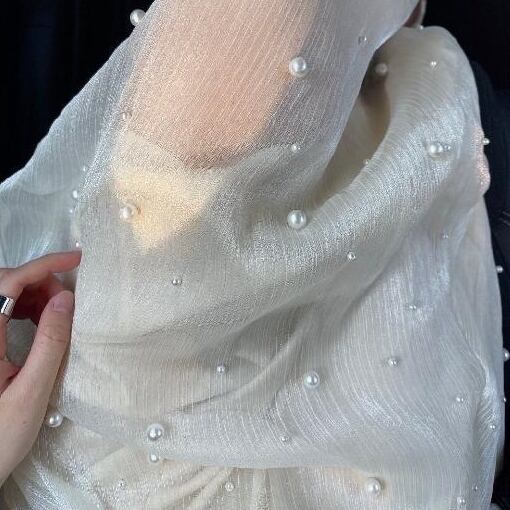 洗練されたデザインのフレアスカートが登場です!透け感のあるシフォン素材にきらめくパールを散りばめた、上品でクラシカルなアイテムです。膝下のロング丈が女性らしさを引き立て、存在感抜群のスタイルを実現します。
