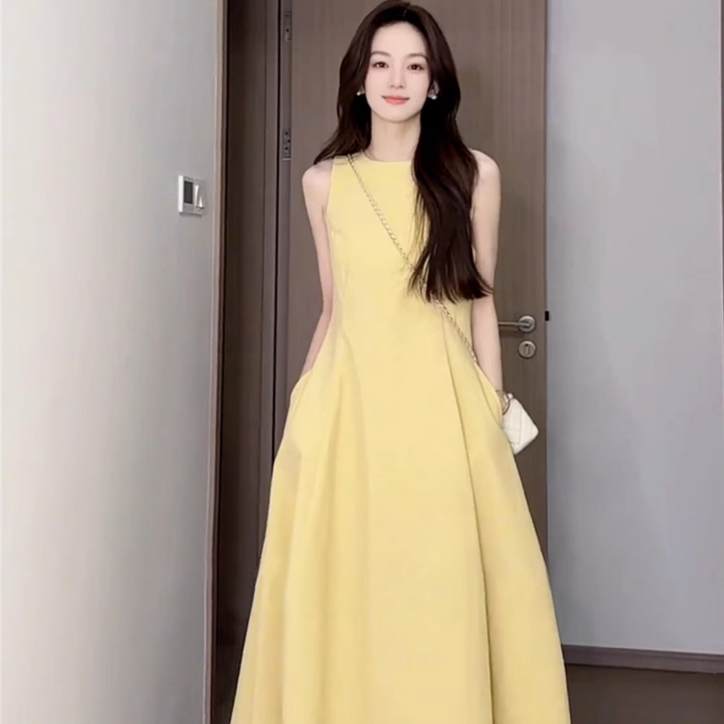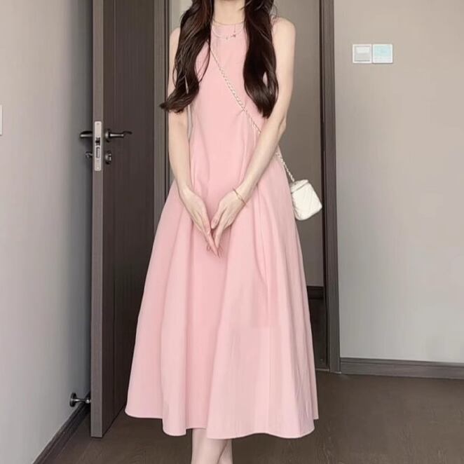 ワンピース 膝下 ミモレ ノースリーブ クルーネック フレア かわいい 大人可愛い きれいめ シンプル カジュアル 上品 おしゃれ かっこいい こなれ感 ラフ ガーリー ルーズ 個性的 クール モード系 エレガント 主役級 存在感 キュート 都会的 ラグジュアリー ナチュラル 夏 学生 学校 お出かけ お泊まり パーティー イベント リゾート 旅行 海 プール ビーチ 公園 女子会 休日 ホテル ガーデン ショッピング ライブ カフェ 韓国 オルチャン 体型カバー 流行 S M L XL 2XL