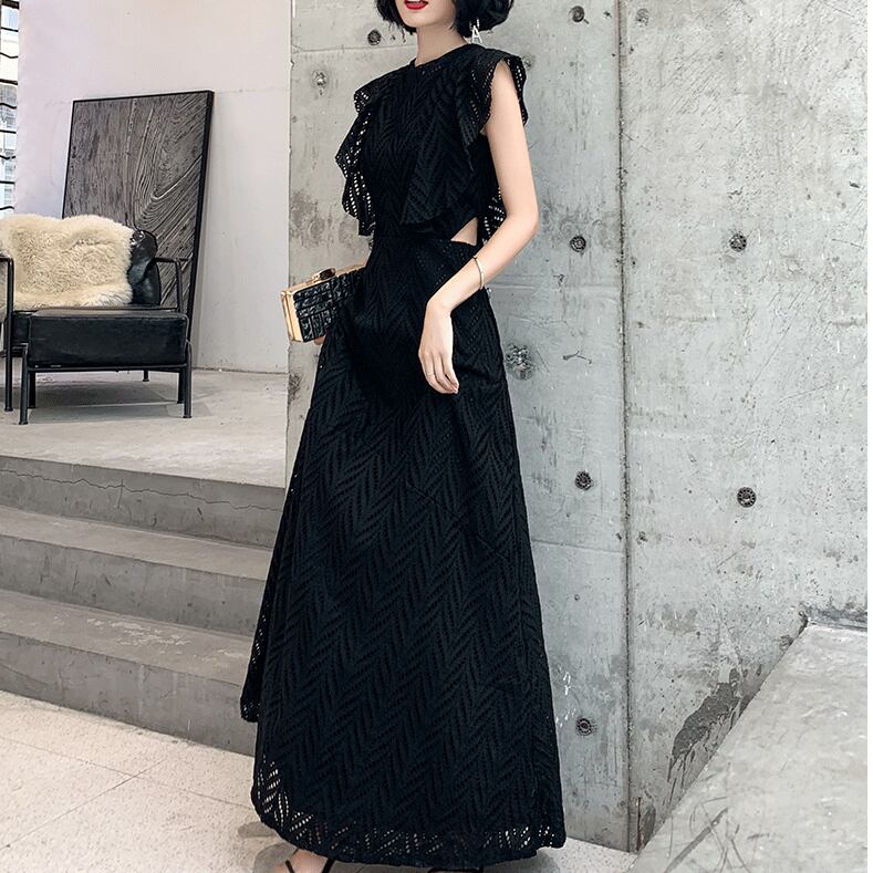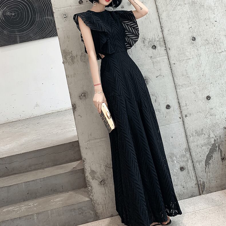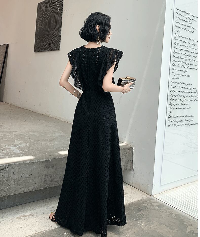 美しいパンチングレースの透け感が魅力のロングドレスです。フレアスリーブとAラインのスカートが優雅なシルエットを生み出し、上品さと華やかさを兼ね備えています。パーティーや二次会、披露宴、演奏会、発表会など、さまざまな特別なイベントで主役級の存在感をアピールできます!さらに、カジュアルなシーンにもぴったりなデザインで、大人可愛いスタイルを求める方におすすめです。