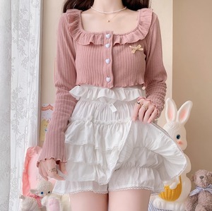 フリルデザインが魅力的で、ガーリーな雰囲気を引き立てます。
