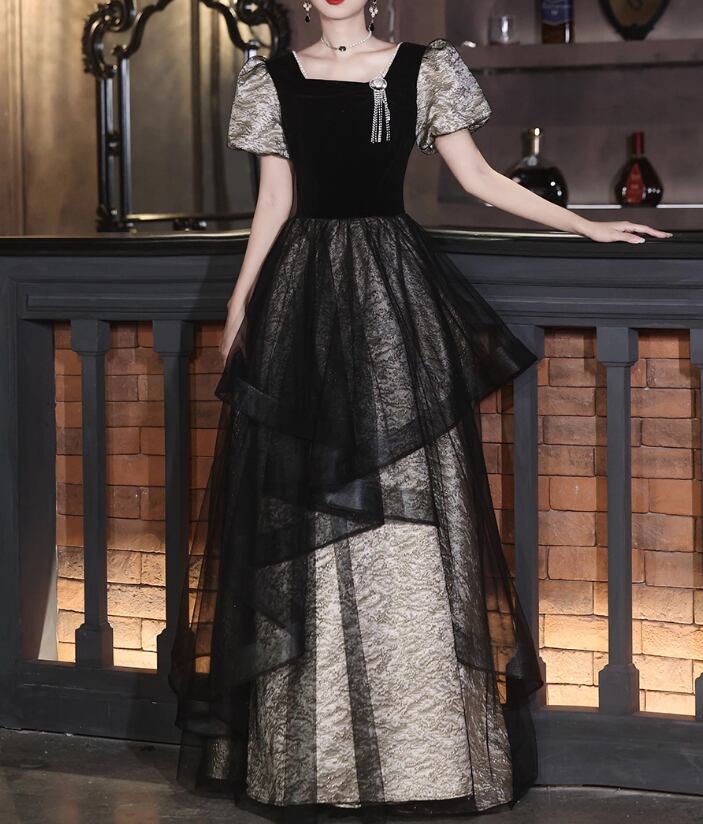 ロングドレス ドレス ウェディング パーティー 結婚式 披露宴 演奏会 発表会 謝恩会 ラウンジ クラブ ロング 半袖 パフスリーブ スクエアネック プリンセスライン チュール ハイウエスト ラグジュアリー 可愛い きれいめ 大人可愛い 上品 おしゃれ クール エレガント 主役級 存在感 クラシック ゴージャス シック 華やか クラシカル 教会 チャペル 体型カバー 高見え 格上げ プチプラ 春 夏 秋 冬 シーズンレス 2XL 3XL S M L XL 大人カラー ベーシックカラー 黒 ブラック