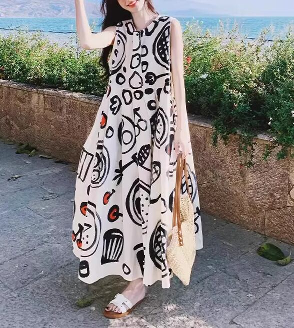 ロングワンピース ノースリーブワンピース レディース ワンピース ロング 袖なし ノースリーブ クルーネック かわいい 大人可愛い おしゃれ レトロ ガーリー 個性的 存在感 ラブリー キュート ナチュラル 総柄 春 夏 秋 ロングシーズン デート お出かけ リゾート 海 ビーチ 女子会 休日 ガーデン コンサート ライブ お花見 カフェ ランチ 韓国 オルチャン 楽ちん プチプラ 普段使い 着回し モテ インスタ映え L XL 2XL 3XL 4XL 大きいサイズ 白 ホワイト ベーシックカラー