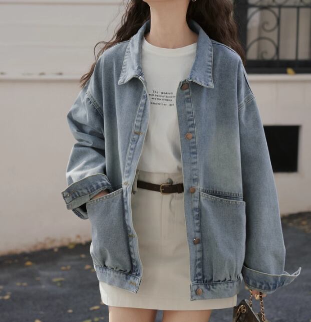 レディース ジャケット アウター 上着 デニムジャケット Gジャン 長袖 襟付き オーバーサイズ ポケット 前開き デニム ブルーデニム かわいい カジュアル おしゃれ かっこいい ボーイッシュ ガーリー 存在感 キュート ベーシック アクティブ 無地 春 秋 デート お出かけ 女子会 休日 ショッピング コンサート ライブ お花見 カフェ ランチ 重ね着 韓国 オルチャン コーデ プチプラ 普段使い 着回し モテ インスタ映え 定番 S M L 小さいサイズ 大きいサイズ ブルー ベーシックカラー