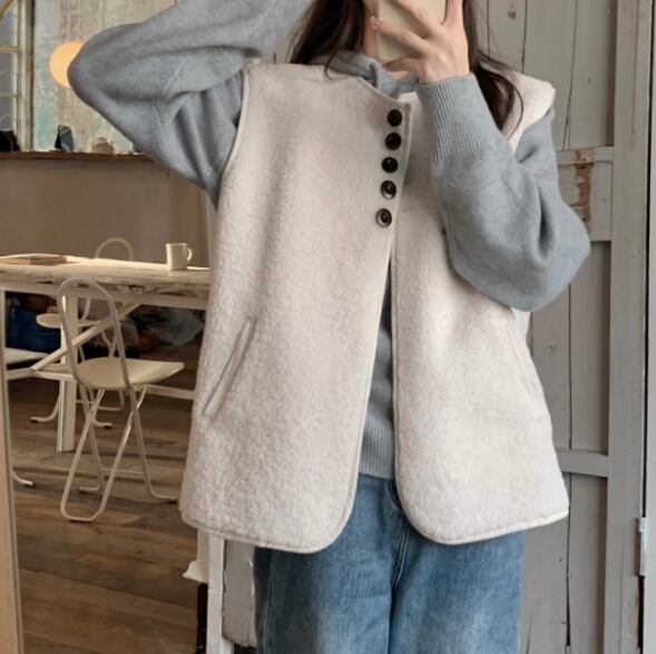 レディース トップス ベスト 羽織 袖なし ノースリーブ クルーネック もこもこ 前開き かわいい シンプル カジュアル おしゃれ ラフ ガーリー 存在感 ラブリー キュート ベーシック カントリー ナチュラル 無地 春 秋 通勤 通学 デート お出かけ 旅行 公園 女子会 休日 ショッピング コンサート ライブ お花見 カフェ ランチ 重ね着 韓国 オルチャン コーデ 楽ちん プチプラ 普段使い 着回し モテ インスタ映え 定番 フリーサイズ ワンサイズ アプリコット ベーシックカラー 春カラー