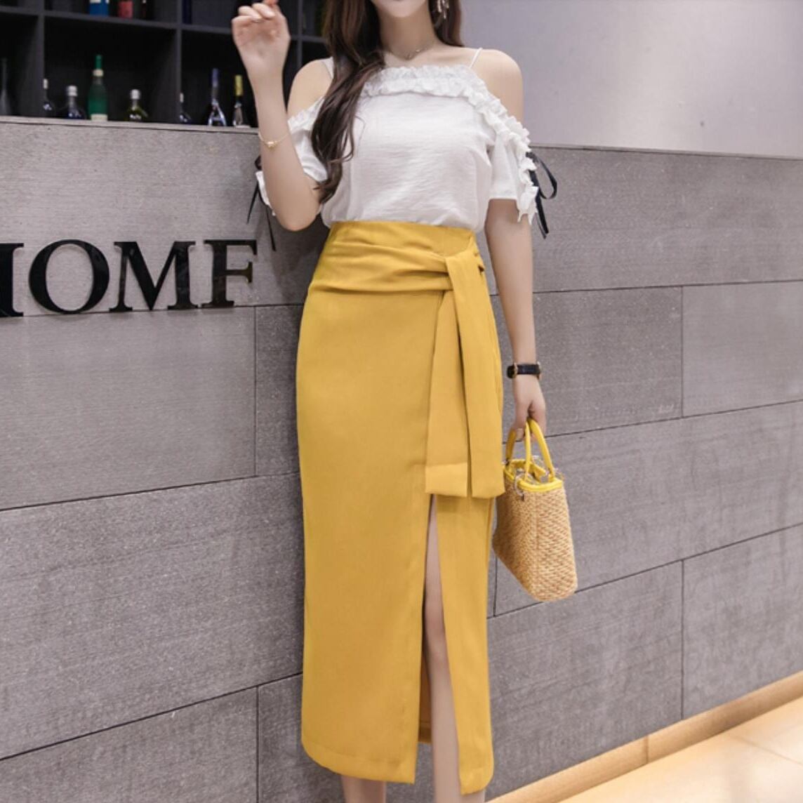 スカート タイト スリット カジュアル デイリー お出掛け 3色 イエロー ブラック オフホワイト ホワイト 20代 30代 40代 春 夏 秋 タイトスカート 膝下 細身 レディース ボトムス うすめ 透け感 送料無料 スリム ストレート ハイウエスト 大人可愛い きれいめ 大人 上品 おしゃれ クール 大人カラー レディース ママ オフィス 普段使い 韓国 脚長 インスタ映え