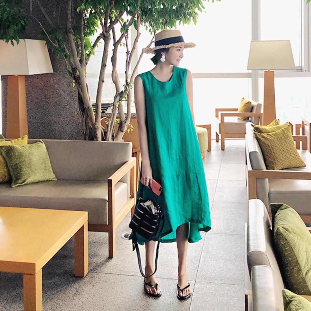 3色 ワンピース レディース ミモレ丈 ゆったり 体型カバー ワンピ フィッシュテール シンプル 無地 カジュアル ノースリーブ きれいめ 大人 膝下 ラウンドネック 春 夏 ワンピース コーデ コットンリネン 緑 ピンク 黄色 グリーン イエロー 薄手 ティアードワンピース ビビットカラー 20代 30代 40代 韓国系 ファッション 大きいサイズ ワンピドレス おしゃれ S M L XL ラフ 着回し 休日 お出かけ ママ 爽やか こなれ感 袖なし ふんわり 楽ちん 動きやすい 重ね着 送料無料