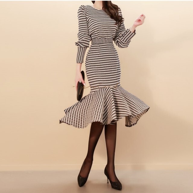 ワンピース レディース 送料無料 フレアワンピース ワンピドレス ひざ丈 ミモレ丈 袖あり ボリューム袖 Uネック セミフレア スリム タイト 細身 ドッキング 切り替えデザイン プリーツ ウエストマーク かわいい 大人可愛い きれいめ 上品 おしゃれ 大人女子 こなれ感 個性的 クール エレガント 主役級 存在感 フォーマル S M L XL 大きいサイズ ホワイト ブラック 格子柄 千鳥格子 春 秋 冬 入学式 二次会 誕生日 20代 30代 ビジネス お出かけ パーティー イベント 韓国系 脚長効果