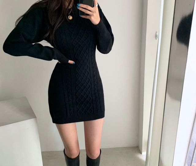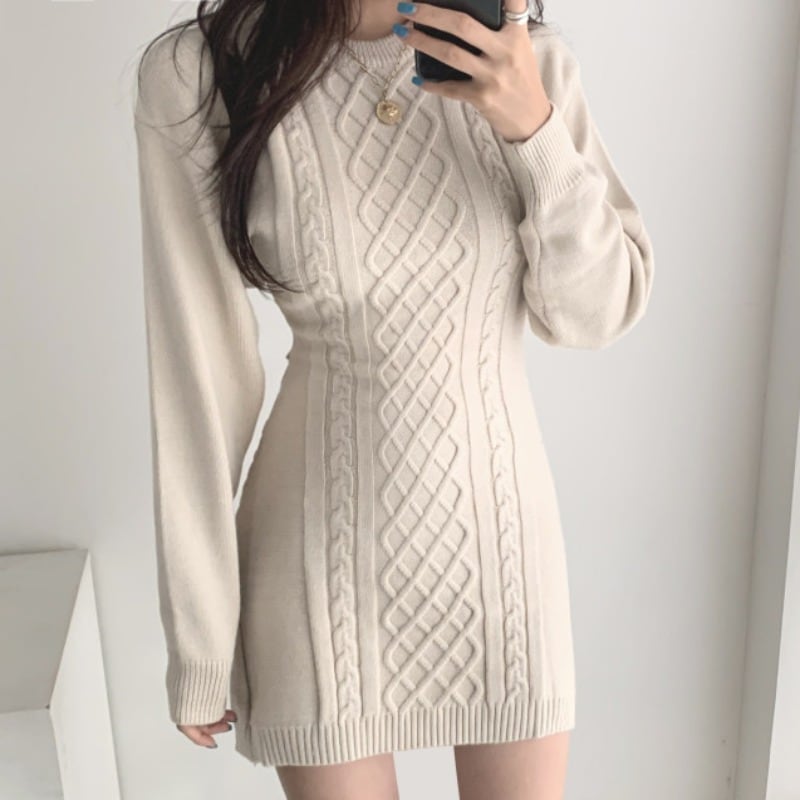 ワンピース レディース 送料無料 ニットワンピ ミニワンピ ニットワンピース スリム タイトスカート ミニ丈 ニットドレス ラウンドネック 長袖 セーター アランニット ダイヤモンドパターン リブ袖 背中開き オープンバック セクシー 女っぽ ケーブルニット オフホワイト ブラック モテ デート 女子会 お出かけ スタイル 美脚 小顔見せ 着痩せ かわいい きれいめ おしゃれ かっこいい イベント コスプレ インスタ 韓国 海外ファッション セレブ ゴージャス タイト ボディライン チラ見せ