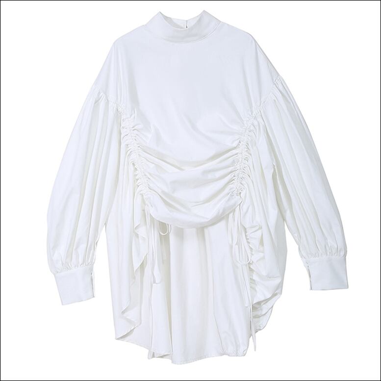 長めに施されたダブルの紐がモードなニュアンスを出してくれるシャツトップス