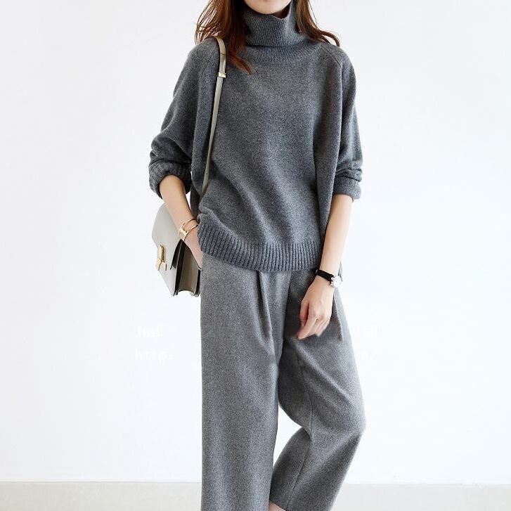 厚手でふっくらやわらかい、とてもあたたかなタートルネックニット。