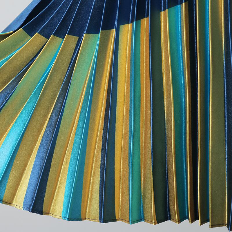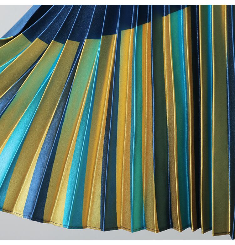 スカート ボトムス レディース 送料無料 ロングスカート プリーツスカート ひざ丈 ミモレ丈 セミフレア プリーツ ウエストゴム 大人可愛い きれいめ 上品 おしゃれ かっこいい レトロ アジアン エキゾチック 大人女子 こなれ感 クール モード系 セクシー エレガント モダン 主役級 存在感 S M L XL 2XL 大きいサイズ ゆったり 青 ブルー 緑 グリーン 黄色 イエロー 大人カラー 光沢 春 夏 秋 冬 20代 30代 40代 デート お出かけ 休日 パーティー イベント リゾート 旅行