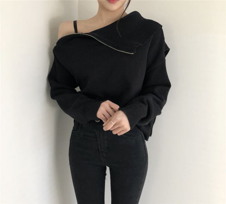 ハイネック サイドジッパー オフショルダー セーター レディース 春秋 韓国ファッション スタイル デザイン センス 厚みのある ツーウェア ニット セーター 送料無料 きれいめ おしゃれ かっこいい 小顔見せ 着瘦せフェミニン キュート メリハリ 女子会 お出かけ オフィス 通勤 ふんわり 着回し ヘビロテ 重ね着 休日 特別な日 お祝い 記念日 メンズウケ 普段着 春コーデ 秋コーデ 韓国 おしゃれ シンプル 韓国ファッション 個性派 インスタ映え クール マニッシュ