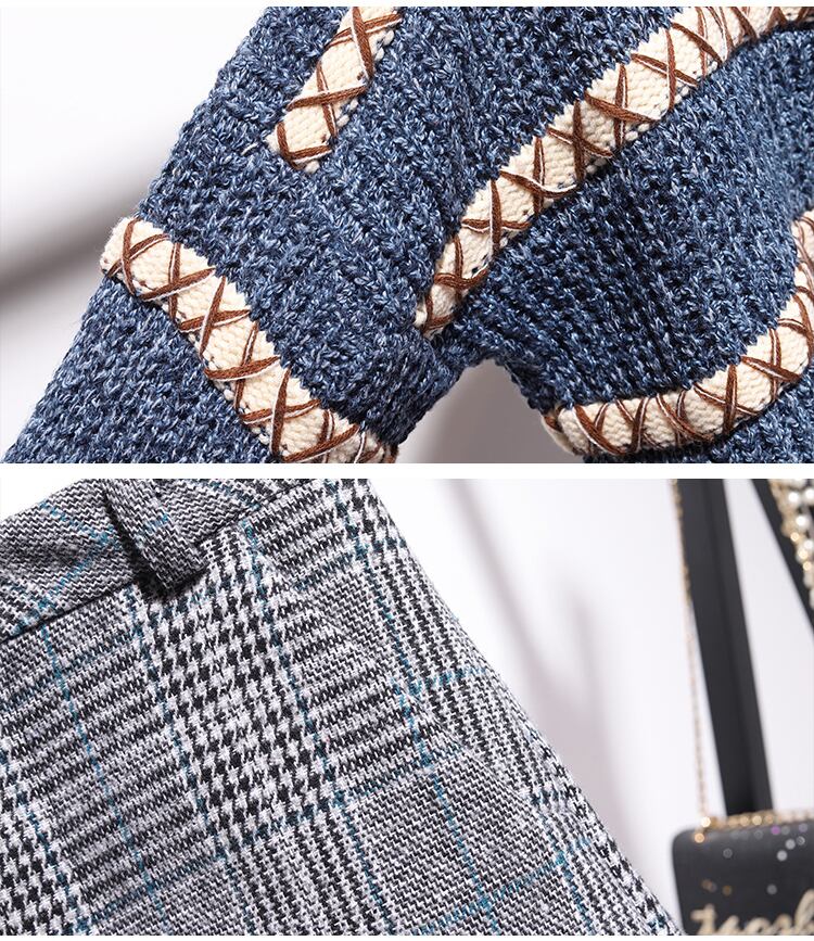 セットアップ レディース 送料無料 ツーピース セーター ショートパンツ ハイネック グレンチェック ノスタルジック ショート丈 ニット 秋 冬 かわいい おしゃれ カジュアル キュロット インスタ トレンド デート 女子会 お出かけ ブルー グレージュ 小顔見せ 着痩せ ブリティッシュ レトロ トラッド