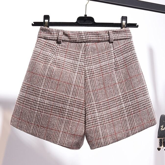 ノスタルジックなムード漂うニットと、グレンチェックのショートパンツのセットアップ。