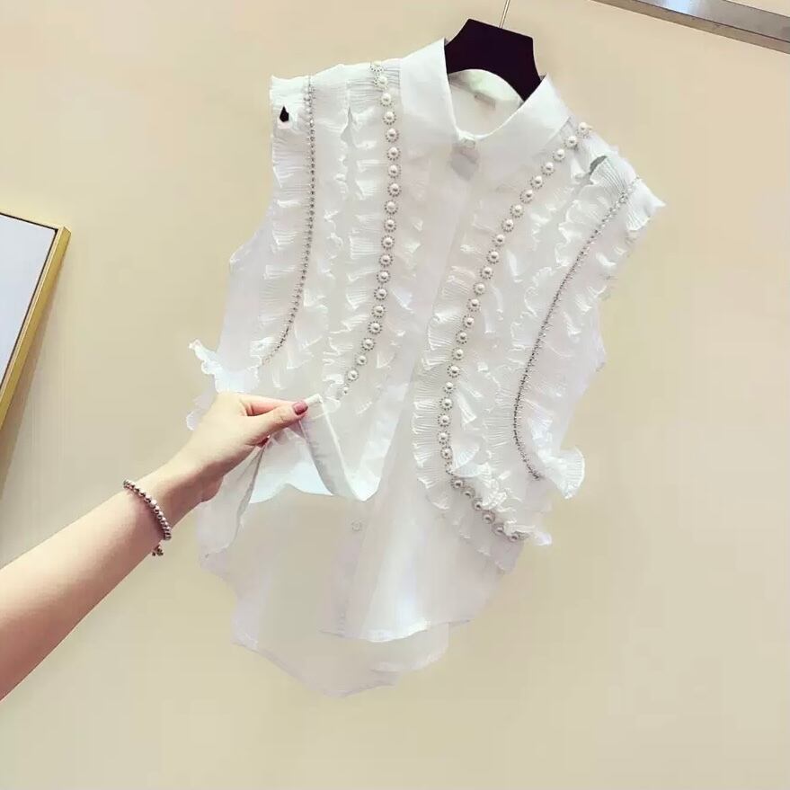2色 パール シースルー フリルブラウス 送料無料 レディース ノースリーブ トップス フロントボタン 大人可愛い かわいい きれいめ 大人女子 エレガント 肌見せ 無地 春 夏 秋 ガーリー 10代 20代 大人 学生 お出かけ 外出 きれいめカジュアル 着回し ファッション デート コーディネート 重ね着 休日 特別な日 お祝い 記念日 メンズウケ 普段着 春コーデ 夏コーデ 秋コーデ おしゃれ シンプル スタイル ゆったり 細見せ ファッション シフォン フォーマル 30代 オフィス ママコーデ
