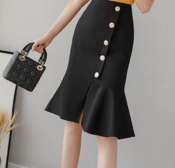 ボタン付きフィッシュテールスカート ヒップスカート ハイウエストスリムフィットスプリットミドル丈スカートスカート レディース 送料無料 スカート フレア かわいい 大人可愛い きれいめ シンプル カジュアル 大人 上品 おしゃれ お洒落 こなれ感 ラブリー キュート ガーリー エレガント 存在感 主役級 無地 春 デート お出かけ モテ きれいめ 大人女子 イベント トレンド 大人女子 シンプル ベーシック