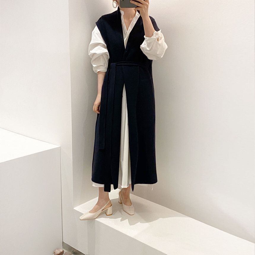 ルーズパフスリーブ シャツドレス Vネックネクタイ ウエストロングニットベスト 送料無料 かわいい 大人可愛い きれいめ シンプル カジュアル 大人 上品 おしゃれ お洒落 こなれ感 ラブリー キュート エレガント 存在感 主役級 無地 春 デート お出かけ モテ きれいめ 大人女子 イベント トレンド 大人女子 シンプル ベーシック 10代 20代 30代 40代 ママ 女性用 OL 学生 通学 デート お出かけ 女子会 休日 旅行 普段使い 韓国系 コーデ