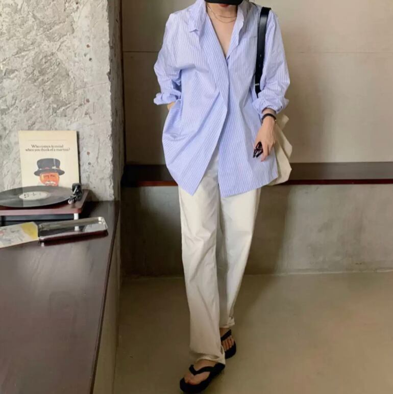 トップス レディース 送料無料 シャツ 袖あり 長袖 襟付き ポケット 前開き かわいい 大人可愛い きれいめ シンプル 上品 おしゃれ お洒落 エキゾチック 大人女子 こなれ感 ルーズ モード系 エレガント モダン 存在感 S M L ゆったり ゆる 青 ブルー 大人カラー ストライプ 春 夏 秋 冬 オールシーズン シーズンレス 20代 30代 40代 ママ オフィス ビジネス OL お出かけ イベント リゾート 旅行 着回し 普段使い 重ね着 韓国系 楽ちん 体系カバー 定番 インスタ映え