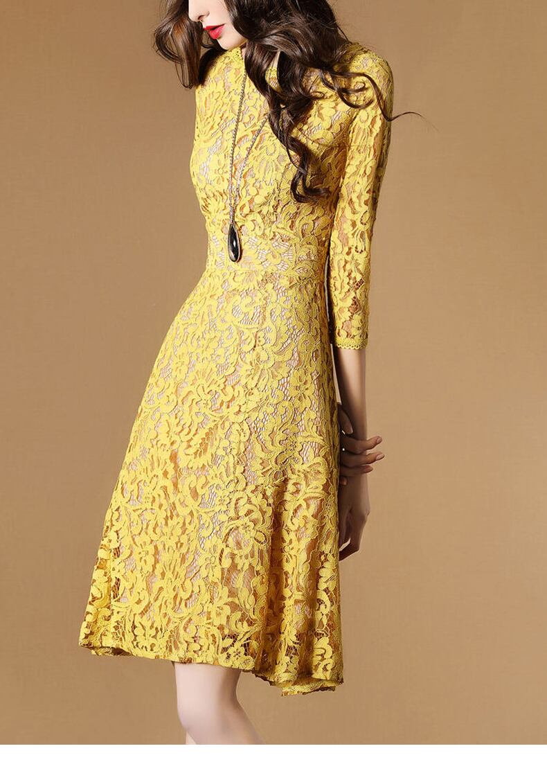 ワンピース レディース 送料無料 レースワンピース フレアワンピース Aラインワンピース ミドル丈 ひざ丈 ひざ上丈 透け感 ラウンドネック レーシー イエロー フィッシュテール フラワーレース エレガント きれいめ おしゃれ かわいい レトロ クラシカル フェミニン ガーリー フォーマル イベント パーティー 二次会 小顔見せ 着痩せ 体形カバーハイウエスト ロマンチック 大きいサイズ プラスサイズ S M L XL 2XL 3XL インスタ トレンド 美脚 大人かわいい ドレス スタイル 半袖