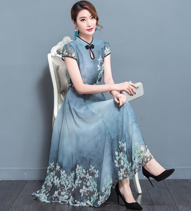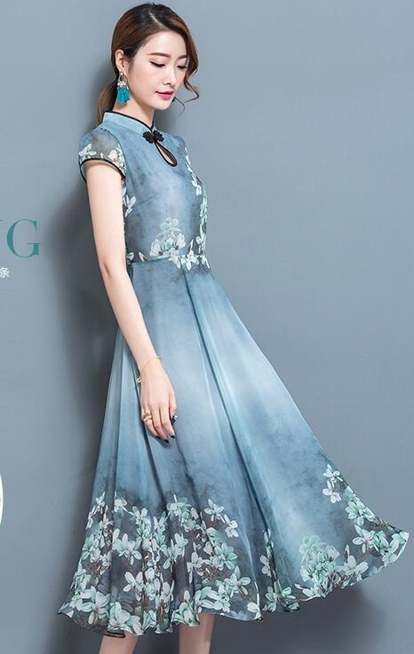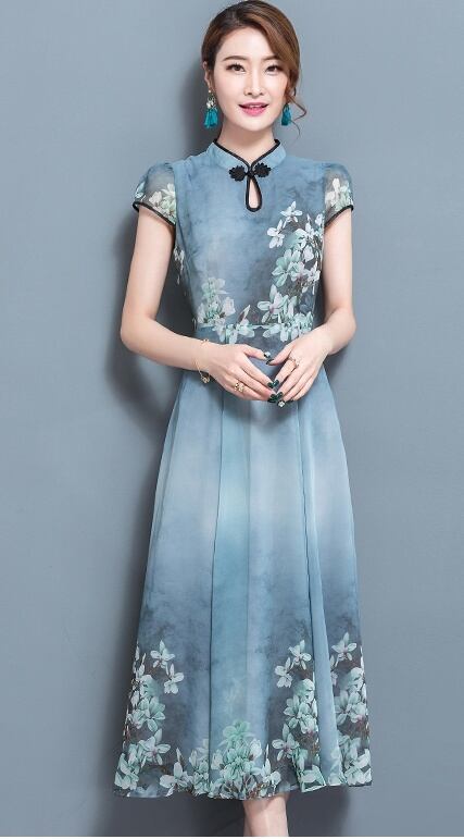 ワンピース レディース 送料無料 チャイナドレス風 フラワープリント 半袖 ロング フレア ミモレ丈 ミモレ 袖あり スタンドカラー 刺繍 レース 夏 花柄 水色 ブルーグレー 二次会 謝恩会 披露宴 パーティー オールシーズン かわいい 大人可愛い きれいめ シンプル カジュアル 大人 上品 おしゃれ 美脚 脚長 かわいい 大人可愛い きれいめ シンプル カジュアル 大人 上品 おしゃれ セクシー エレガント 主役級 存在感 フォーマル とろみ感 韓国 オルチャン S M L XL 2XL 3XL