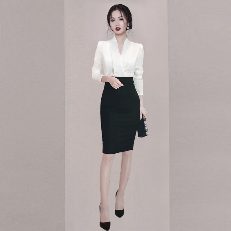 セットアップ レディース 送料無料 ツーピース スーツ Vネック 長袖 ハイウエスト タイトスカート 袖ボタン オフィス OL 通勤 フォーマル かっこいい きれいめ 大人かわいい バイカラー ツートーンカラー ミニ丈 ショート丈 ホワイト ブラック モノトーン 白黒 ビジネス タイトスカート コクーンスカート スタイル 美脚 スタイル 着痩せ 小顔見せ S M L XL クール セクシー ミニスカート ジャケット ブラウス コーディネート インスタ トレンド モード クロスデザイン