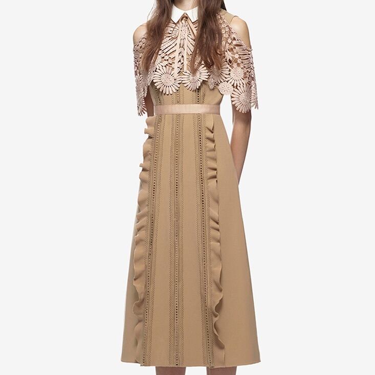 ワンピース レディース 送料無料 フレアワンピース Aラインワンピース ミモレ丈 ひざ下丈 フェミニン オフショルダー フラワーレース おしゃれ オープンショルダー ケープ マント 襟付き スタイル 小顔見せ 着痩せ 体形カバー フォーマル パーティー お呼ばれ インスタ トレンド ベージュ ブラック かわいい S M L 女子会 フリル キュート ガーリー ロマンチック ハイウエスト ヌーディカラー オープンショルダー 5分袖 レーシー レトロ クラシカル エレガント フレア シャツカラー