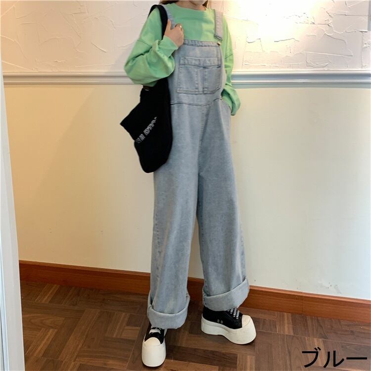 オーバーオール サロペット レディース 送料無料 オールインワン ロング丈 9分丈 アンクル丈 袖なし ノースリーブ 襟なし ワイド ポケット ハイウエスト デニム かわいい シンプル カジュアル おしゃれ かっこいい レトロ アジアン こなれ感 ラフ スポーティー ラブリー キュート ルーズ 個性的 主役級 大きいサイズ フリーサイズ ビッグサイズ ゆったり ゆる 青 ブルー 無地 春 夏 秋 冬 オールシーズン 10代 20代 旅行 着回し 普段使い 重ね着 韓国系 オルチャン 楽ちん 体系カバー