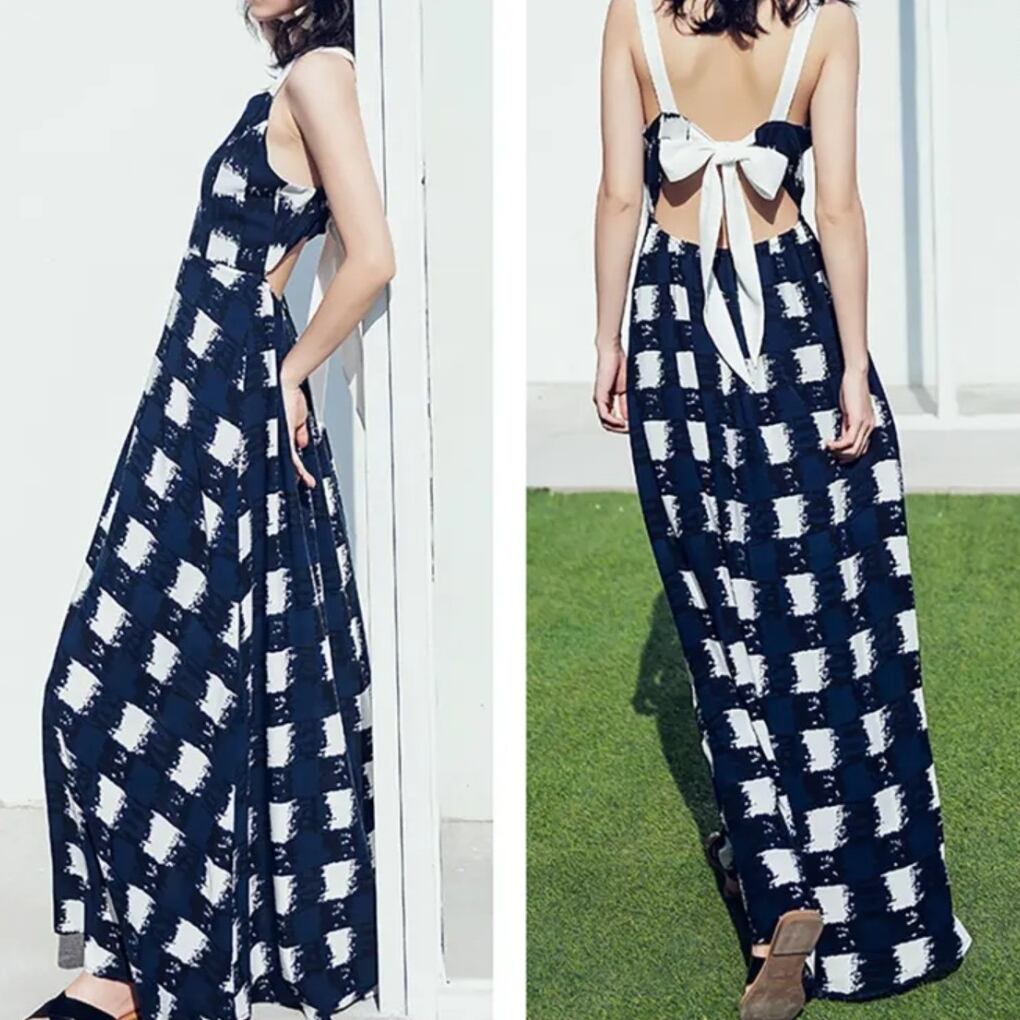 ワンピース レディース 送料無料 キャミワンピース キャミソール Vネック 袖なし ロング丈 マキシ丈 ノースリーブ Aライン フレアワンピース フレア リボン バックリボン ボゥバック オープンバック ギンガムチェック チェック 涼しい かわいい 大人可愛い リゾート 海 セクシー 夏服 夏 カジュアル 大人女子 トレンド モテ 背中開き こなれ感 抜け感 ブラック 黒 ホワイト 白 10代 20代 30代 休日 旅行 お出かけ デート 韓国 韓国系 オルチャン ファッション コーデ 楽ちん 薄手