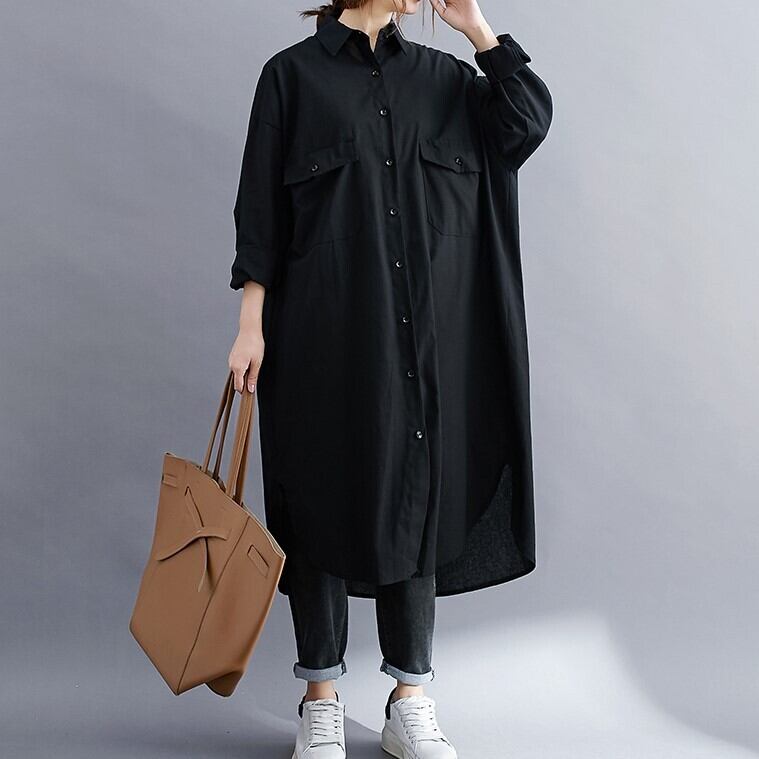 トップス シャツ ワンピース レディース 送料無料 白シャツ シャツワンピース ミモレ丈 ロング丈 袖あり 長袖 襟なし ポケット 前開き かわいい 大人可愛い きれいめ シンプル カジュアル 上品 おしゃれ かっこいい エスニック こなれ感 ラフ スポーティー ルーズ エレガント モダン 存在感 大きいサイズ フリーサイズ ビッグサイズ ゆったり ゆる 白 ホワイト 黒 ブラック 無地 春 夏 秋 冬 オールシーズン 20代 30代 ママ お出かけ 休日 着回し 普段使い 楽ちん 体系カバー