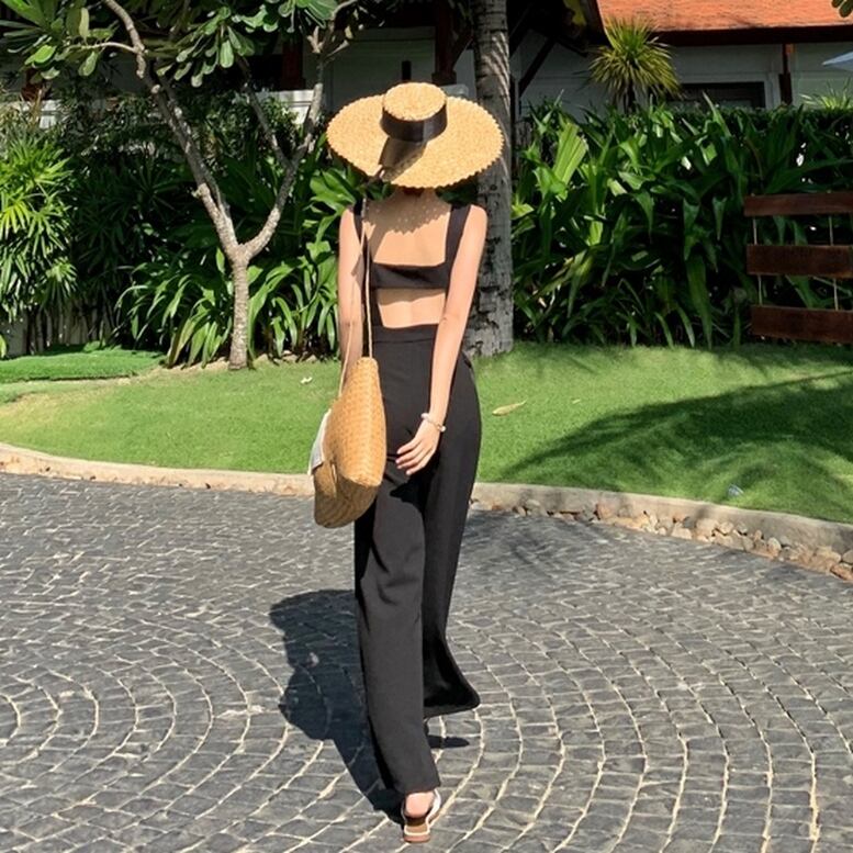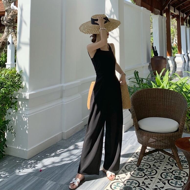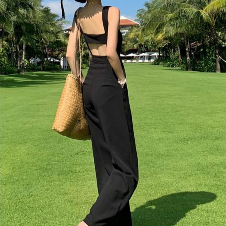 大人ロンパース オールインワン レディース 送料無料 セットアップ ジャンプスーツ ストレートパンツ サロペット バックオープンオールインワン 背中開きジャンプスーツ 袖なし ノースリーブ バックシャン バックコンシャス ハイウエスト 大人可愛い きれいめ 上品 大人女子 こなれ感 マニッシュ 抜け感 黒 ブラック 美脚 脚長 インスタ映え 春夏 大人 かわいい おしゃれ 普段使い デイリー お出かけ 旅行 パーティー 二次会 トレンド