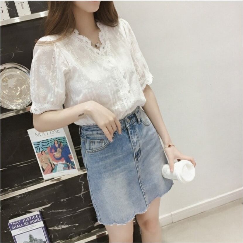トップス レディース 送料無料 シャツ ブラウス Vネック サープリスネック 半袖 パフスリーブ レース シフォン 刺繍 花柄 体型カバー 大きいサイズ ビッグサイズ 大きめ 大きい サイズ豊富 上品 清楚 エレガント 透け感 きれいめ 通気性 ゆったり シンプル お洒落 おしゃれ ガーリー S M L XL 2XL 3XL 4XL ホワイト 白 小花柄 春服 春 夏服 夏 普段使い 重ね着 着回し ファッション コーデ 婦人服 10代 20代 30代 40代 通勤 通学 デート お出かけ 休日 定番