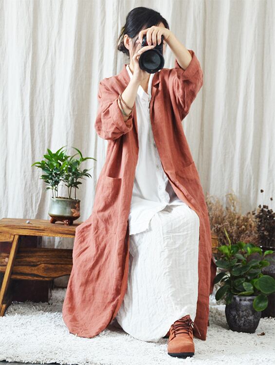 アウター レディース 上着 袖あり 長袖 マキシ丈 ロング丈 前開き リネン かわいい 大人可愛い シンプル カジュアル 大人 おしゃれ お洒落 かっこいい ラフ メンズライク ボーイッシュ ガーリー キュート 抜け感 フリーサイズ オフホワイト ベージュ オレンジ カーキ 緑 グリーン 無地 春 秋 20代 30代 40代 50代 ママ マタニティ 公園デビュー 休日 リゾート 着回し 普段使い 重ね着 楽ちん 体系カバー 定番 プチプラ安い 送料無料